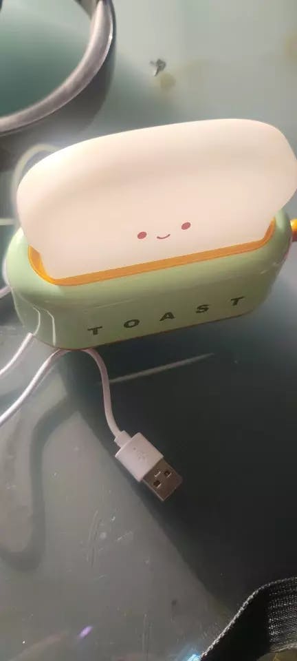The Toastie Lamp is a charming and practical night light that adds a touch of warmth to any space. Designed to look like a piece of toast, this lamp is made from durable ABS materials. It provides a soft, warm light that's perfect for creating a cozy atmosphere. With an intuitive lever switch and a long-lasting rechargeable battery, this lamp is not only a functional night light but also a delightful piece of decor.